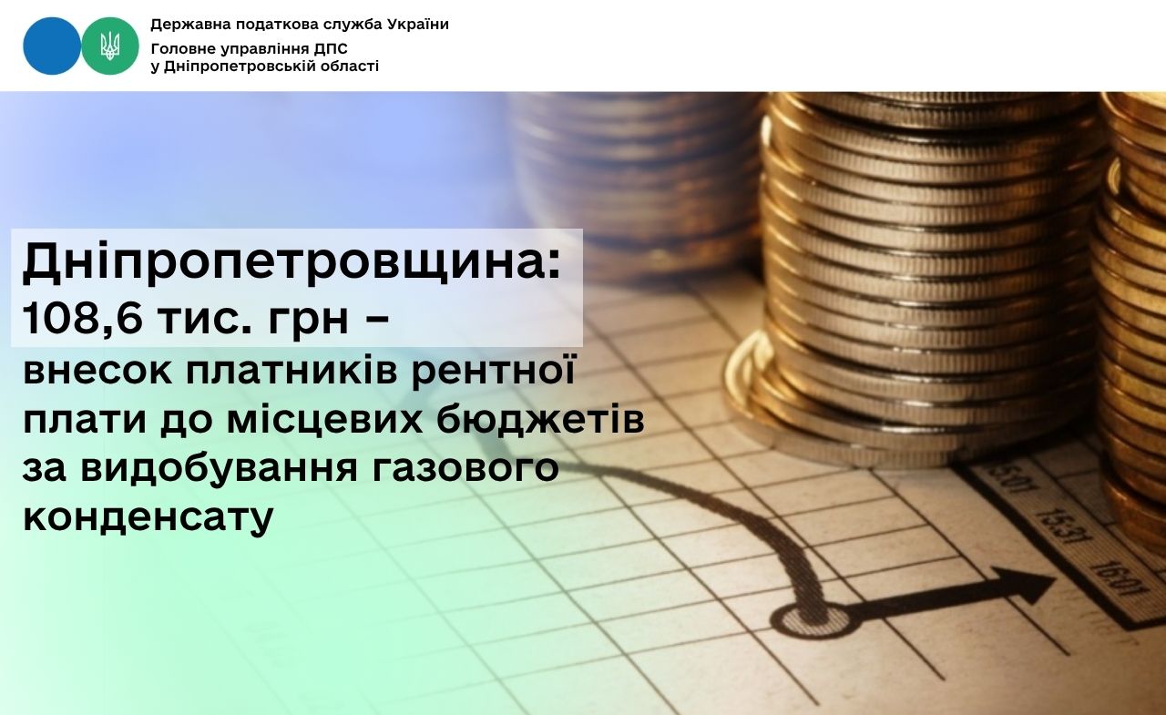 Протягом січня – лютого 2026 року громади Дніпропетровської області отримали від платників рентної плати за видобування газового конденсату 108,6 тис. грн, що на 33,4 тис. грн, або на 44,5 відс., більше ніж у аналогічному періоді 2025 року.