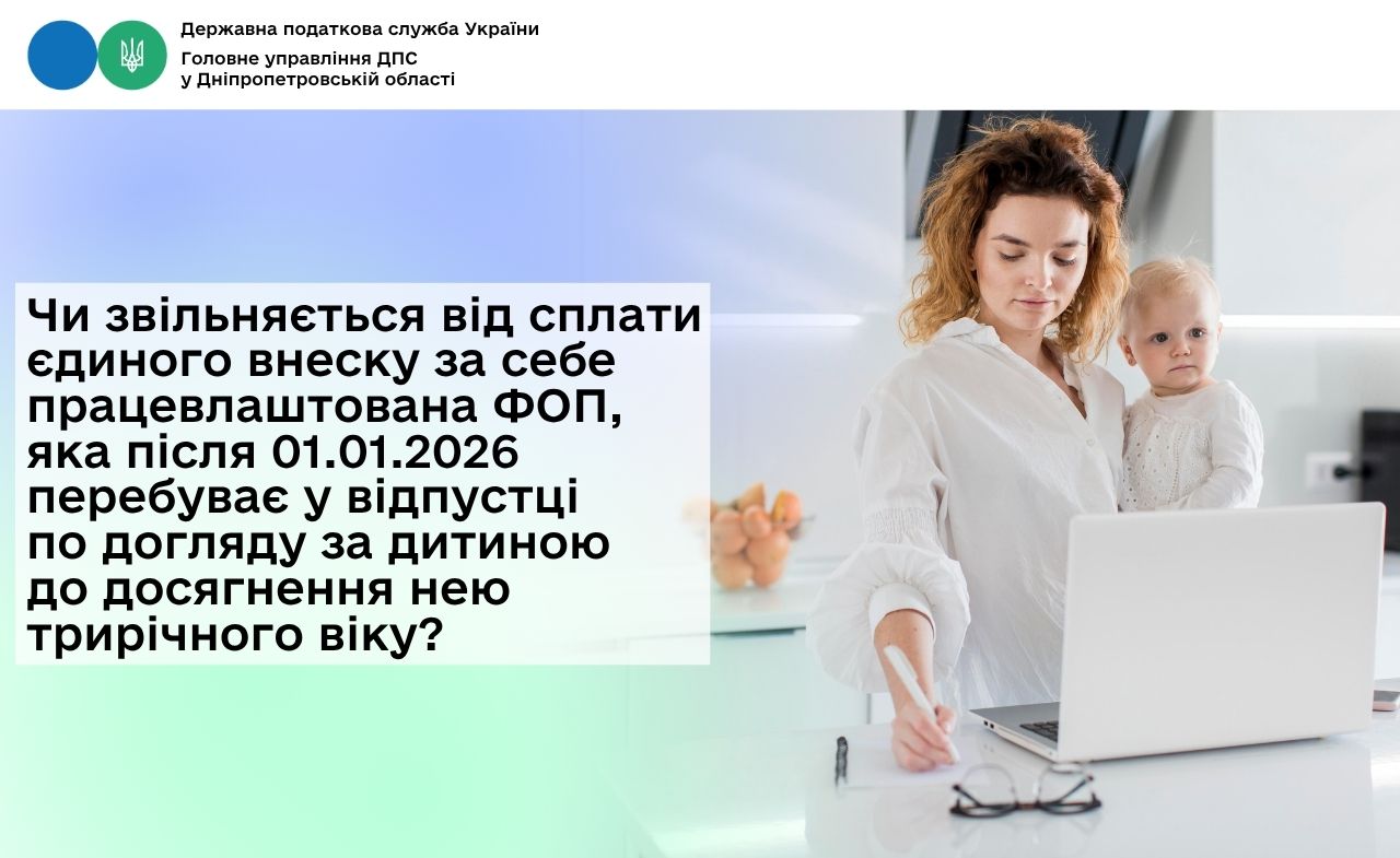 Головне управління ДПС у Дніпропетровській області звертає увагу, що відповідно до ст. 18 Закону України від 15 листопада 1996 року № 504/96-ВР «Про відпустки» (зі змінами та доповненнями) (далі – Закон № 504) після закінчення відпустки у зв’язку з вагітністю та пологами за бажанням матері або батька дитини одному з них надається відпустка для догляду за дитиною до досягнення нею трирічного віку.