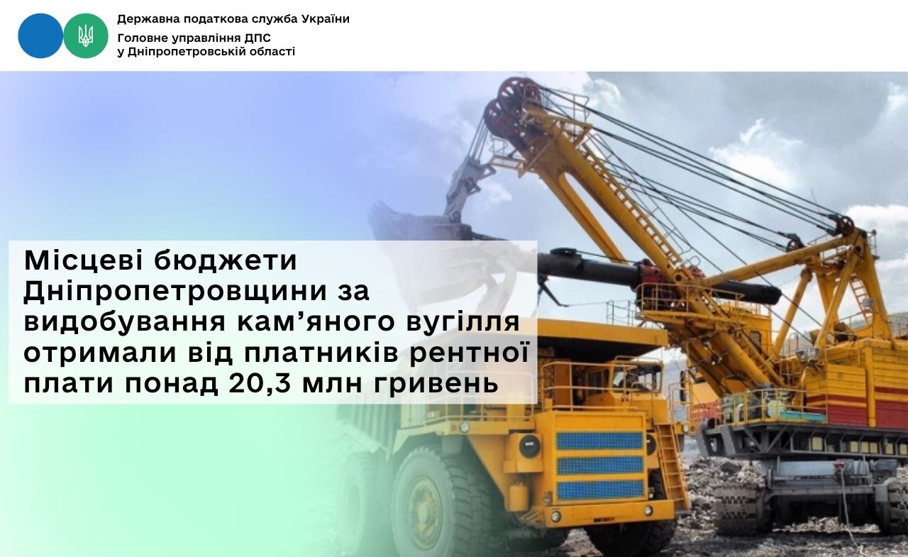 Протягом січня – лютого 2026 року платники рентної плати за видобування кам’яного вугілля поповнили місцеві бюджети Дніпропетровщини на понад 20,3 млн гривень.
