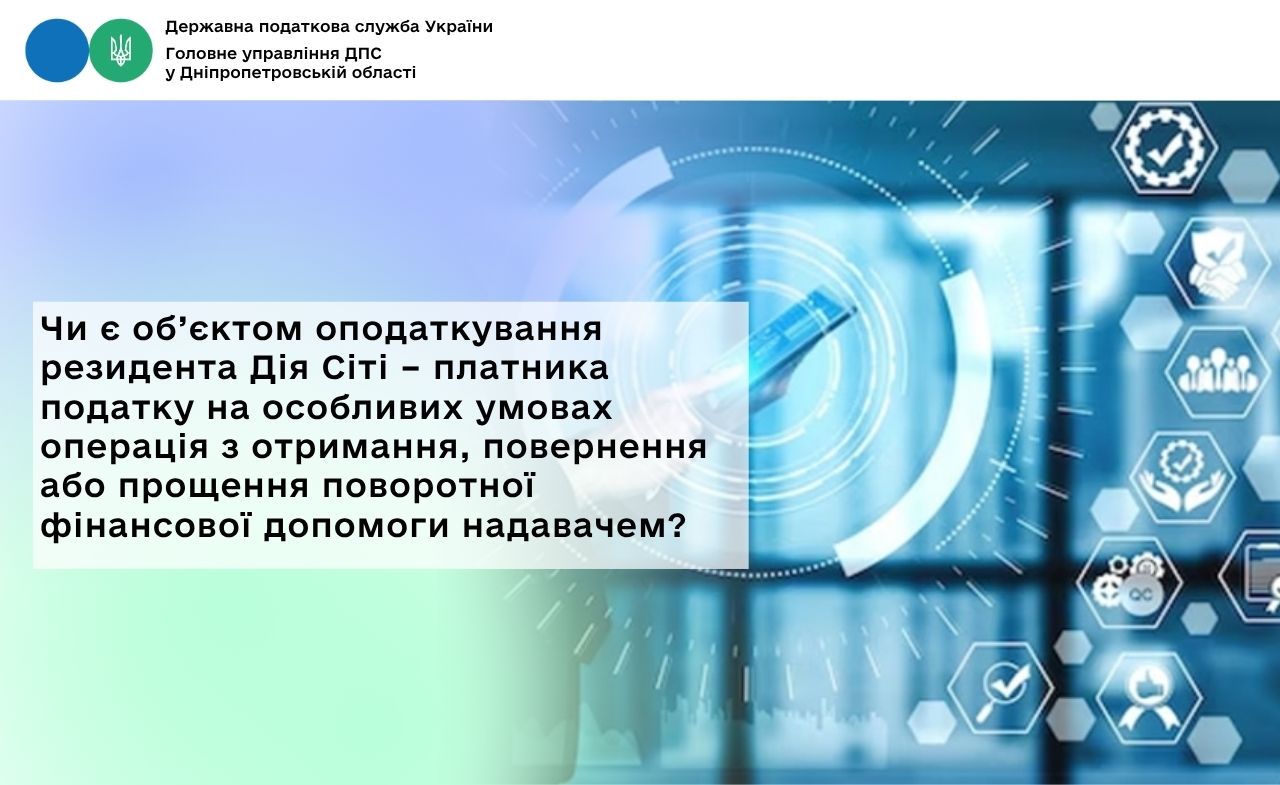 Чи є об’єктом оподаткування резидента Дія Сіті – платника податку на особливих умовах операція з отримання, повернення або прощення поворотної фінансової допомоги надавачем?