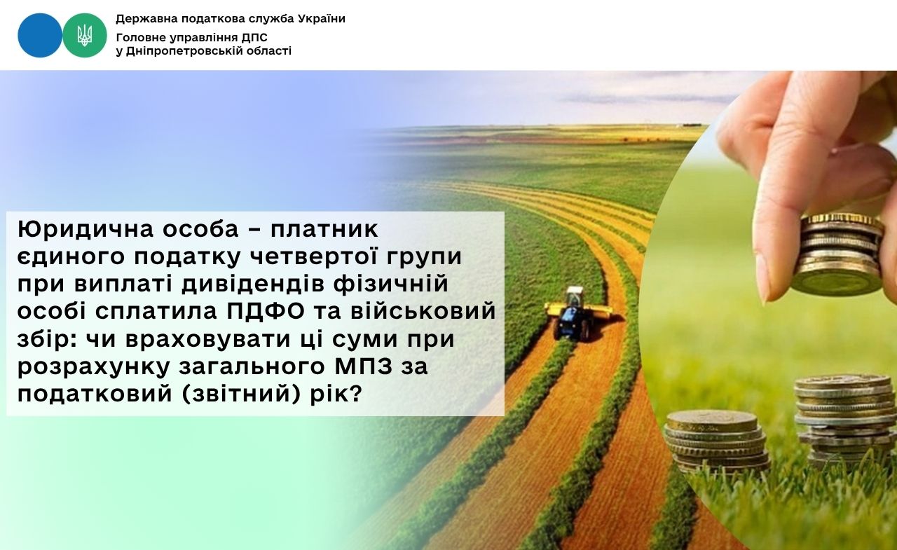 Отже, суми ПДФО та військового збору, сплачені юридичною особою – платником єдиного податку четвертої групи при виплаті дивідендів фізичній особі, враховуються при складанні Додатка 3 до Декларації за умови перебування такої фізичної особи у трудових відносинах з цією юридичною особою (роботодавцем).