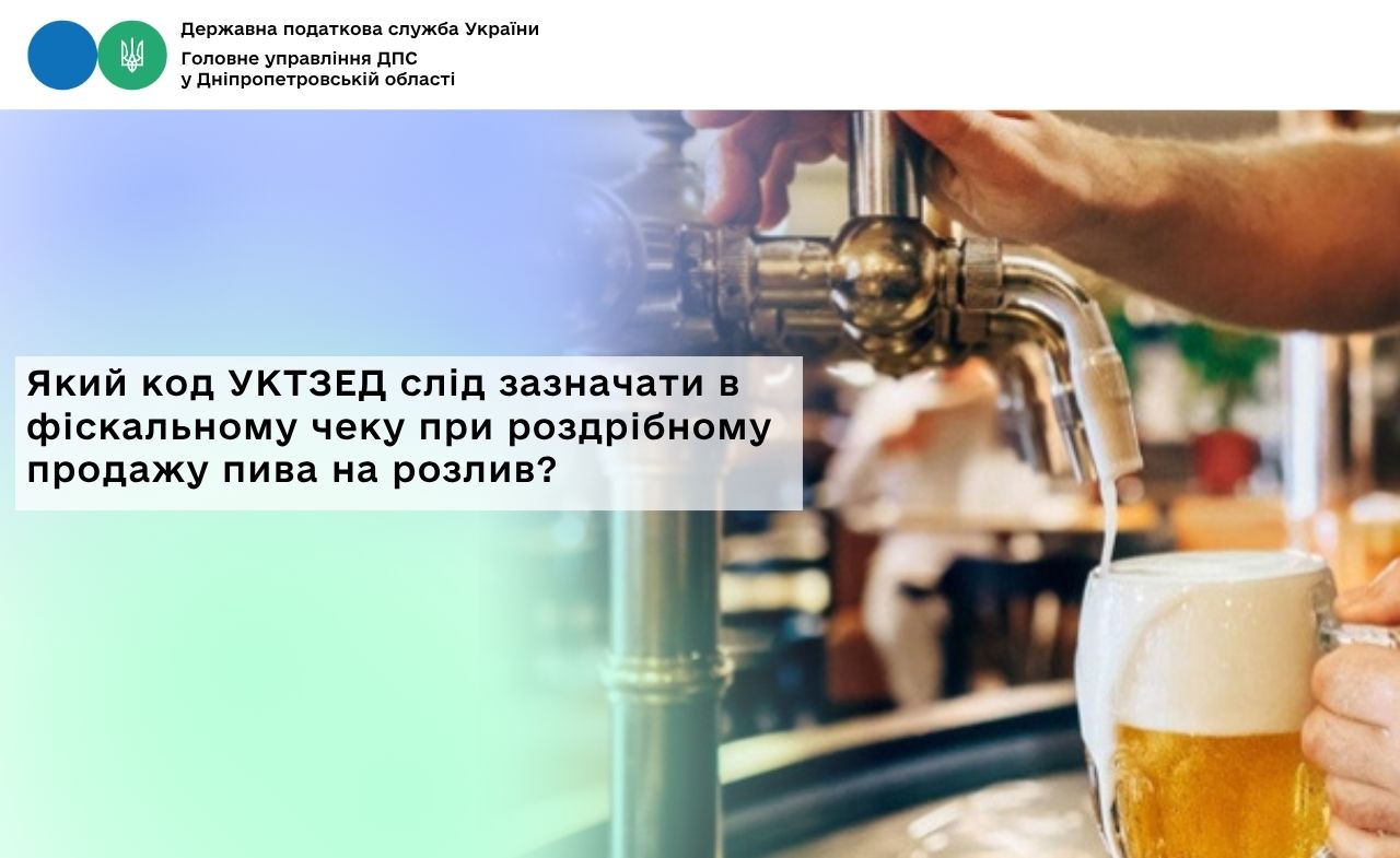 Отже, при проведенні роздрібної торгівлі пивом на розлив у фіскальному касовому чеку слід зазначати найменування пива, ціну за одиницю виміру та кількість, а також код товарної підкатегорії згідно з УКТ ЗЕД, який зазначено у накладній постачальника такого товару.