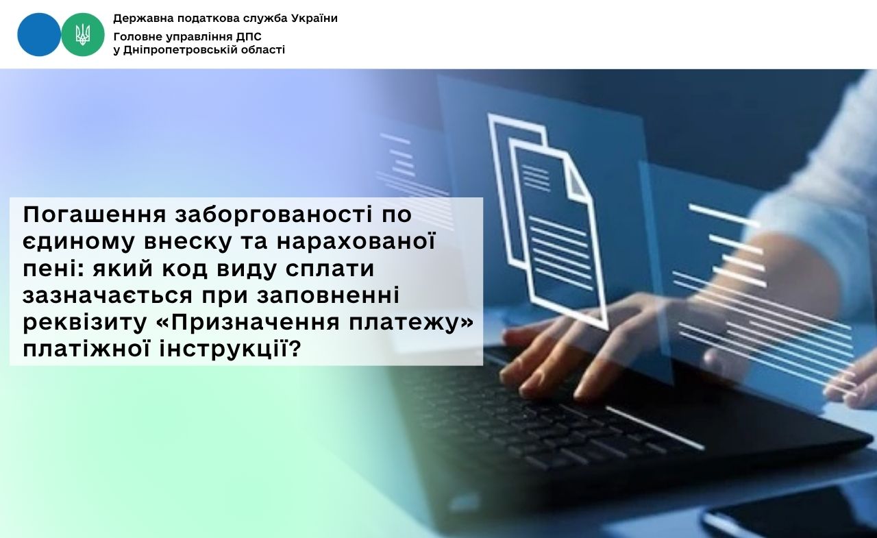 Погашення заборгованості по єдиному внеску та нарахованої пені: який код виду сплати зазначається при заповненні реквізиту «Призначення платежу» платіжної інструкції?
