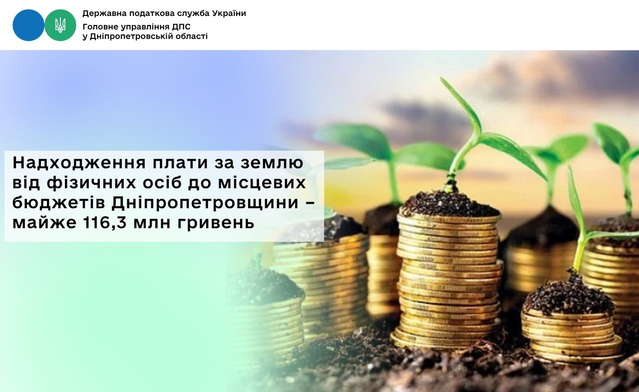 Протягом січня – березня 2026 року фізичні особи – платники плати за землю спрямували до місцевих бюджетів Дніпропетровської області майже 116,3 млн гривень. Це більше на понад 7,4 млн грн, або на 6,8 відс., у порівнянні з січнем – березнем минулого року.