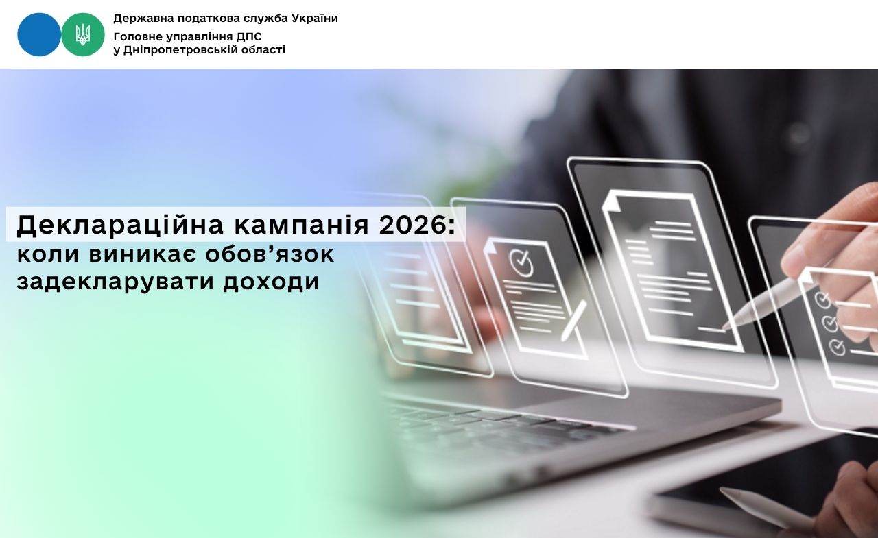 Головне управління ДПС у Дніпропетровській області нагадує, що триває Деклараційна кампанія 2026.