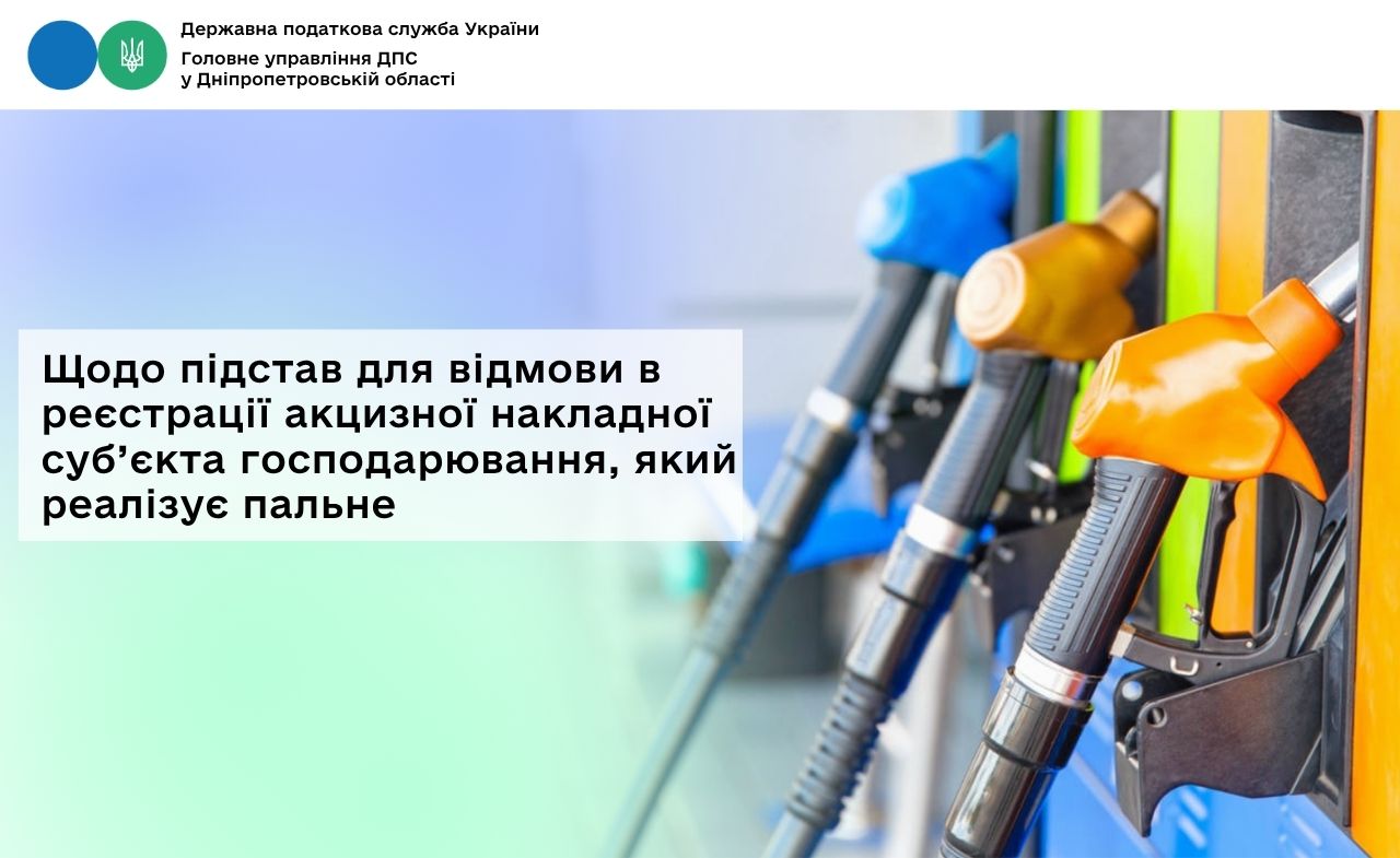 Головне управління ДПС у Дніпропетровській області щодо, чи є підставою для відмови в реєстрації акцизної накладної відсутність у особи, що реалізує пальне ліцензії на право оптової/роздрібної торгівлі пальним (на право зберігання пального), або відсутність у отримувача пального ліцензії на право зберігання пального/ зберігання пального виключно для потреб власного споживання та/або промислової переробки, інформує.