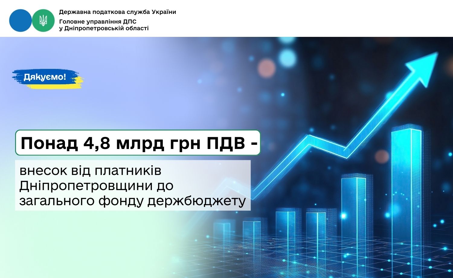 Упродовж січня – березня 2026 року від платників Дніпропетровщини до загального фонду державного бюджету надійшло понад 4 801,5 млн грн податку на додану вартість (ПДВ). Порівняно з минулорічним відповідним періодом надходження збільшились майже на 14,6 млн гривень.