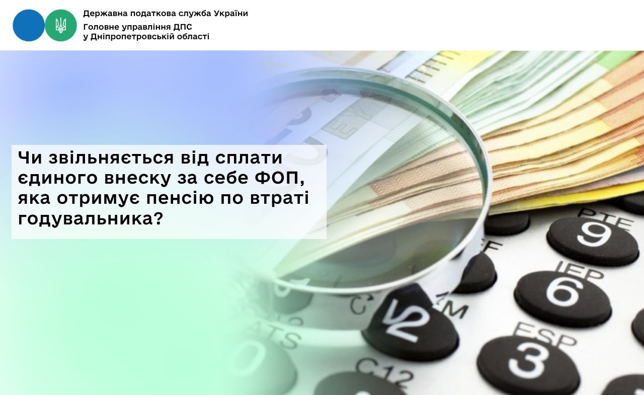 З врахуванням положень Закону № 1058 та частини четвертої ст. 4 Закону № 2464, отримання пенсії у зв’язку з втратою годувальника не звільняє ФОПа від сплати єдиного внеску за себе. Проте, на таку особу поширюється право на звільнення від сплати за себе єдиного внеску, якщо вона досягла пенсійного віку, встановленого ст. 26 Закону № 1058.