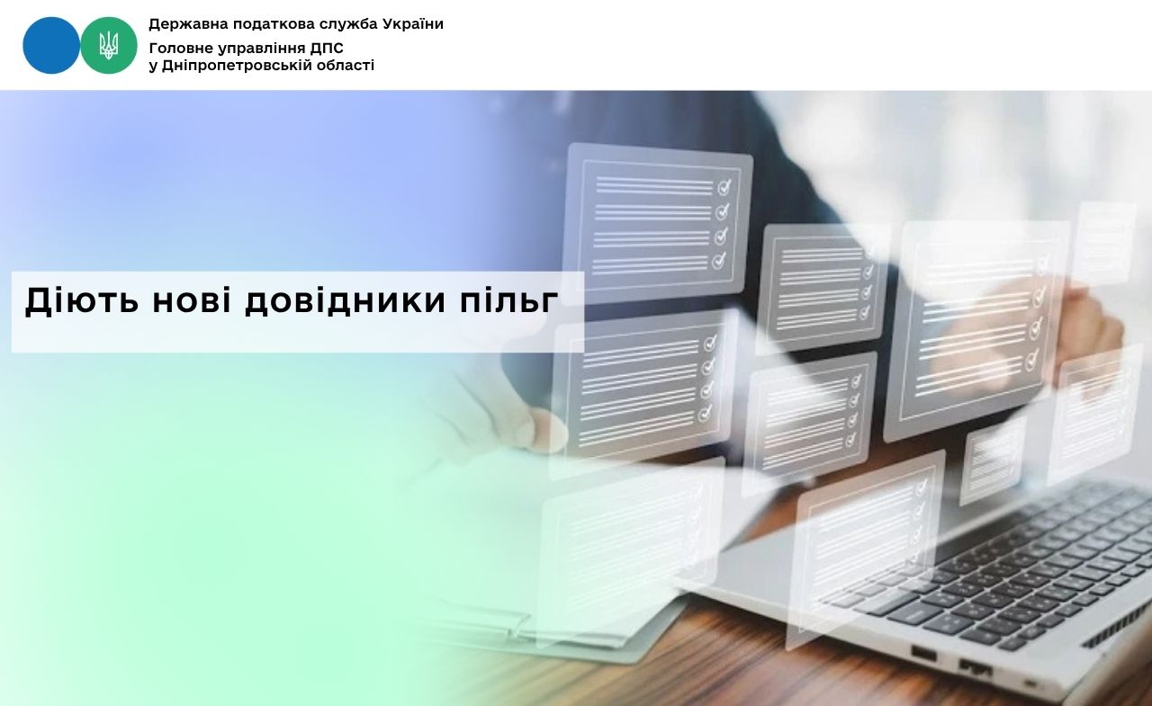 Головне управління ДПС у Дніпропетровській області повідомляє, що 01.04.2026 на вебпорталі ДПС України за посиланням https://tax.gov.ua/dovidniki--reestri--perelik/dovidniki-/54005.html розміщено нові довідники пільг (станом на 31.03.2026), а саме:
