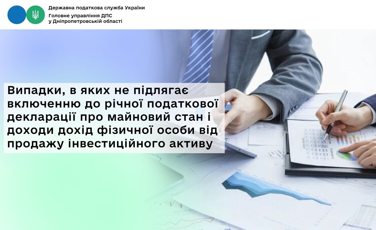 Платник податку на доходи фізичних осіб обов’язково декларує результати усіх операцій з купівлі та продажу інвестиційних активів, здійснених протягом звітного (податкового) року як на території України, так і за її межами, за винятком випадків, зазначених в п.п. 170.2.8 п. 170.2 ст. 170 розд. ІV Податкового кодексу України (далі – ПКУ).