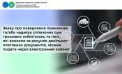 Заяву про повернення помилково та/або надміру сплачених сум грошових зобов’язань та пені, які виникли за рахунок декількох платіжних документів, можна подати через Електронний кабінет