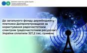 До загального фонду держбюджету платники Дніпропетровщини за користування радіочастотним спектром (радіочастотним ресурсом) України сплатили 327,2 тис. гривень