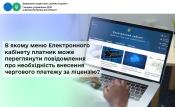 В якому меню Електронного кабінету платник може переглянути повідомлення про необхідність внесення чергового платежу за ліцензію?