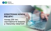 Протягом першого кварталу цього року послугами Кваліфікованого надавача електронних довірчих послуг ДПС скористалися понад 86 тисяч платників. Їм безкоштовно видано 238,3 тис. кваліфікованих сертифікатів відкритих ключів.