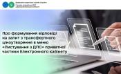 Доступ до приватної частини Електронного кабінету надається після проходження користувачем електронної ідентифікації онлайн з використанням кваліфікованого електронного підпису, отриманого у будь-якого Кваліфікованого надавача електронних довірчих послуг або через Інтегровану систему електронної ідентифікації – id.gov.ua (MobileID та BankID) та за допомогою «хмарного» кваліфікованого електронного підпису (у т. ч. Дія Підпис).