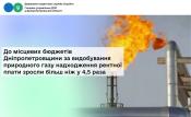 До місцевих бюджетів Дніпропетровщини за видобування природного газу надходження рентної плати зросли більш ніж у 4,5 раза