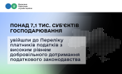 Понад 7,1 тис. суб'єктів господарювання увійшли до Переліку платників податків з високим рівнем добровільного дотримання податкового законодавства