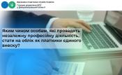 Пунктом 5 частини першої ст. 4 Закону України від 08 липня 2010 року № 2464-VI «Про збір та облік єдиного внеску на загальнообов’язкове державне соціальне страхування» (зі змінами та доповненнями) (далі – Закон № 2464) визначено, що платниками єдиного внеску на загальнообов’язкове державне соціальне страхування (далі – єдиний внесок) є особи, які забезпечують себе роботою самостійно – займаються незалежною професійною діяльністю, а саме науковою, літературною, артистичною, художньою, освітньою або викладацькою, а також медичною, юридичною практикою, в тому числі адвокатською, нотаріальною діяльністю, або особи, які провадять релігійну (місіонерську) діяльність, іншу подібну діяльність та отримують дохід безпосередньо від цієї діяльності, за умови, що такі особи не є найманими працівниками чи підприємцями.