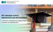 Таким чином, з метою отримання податкової знижки за навчання до вітчизняних відносяться заклади дошкільної, позашкільної, загальної середньої, професійної та вищої освіти, основним видом діяльності яких є освітня діяльність. Типи закладів дошкільної, позашкільної, загальної середньої, професійної та вищої освіти визначено спеціальними законами.