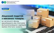 Протягом січня – вересня цього року платники Дніпропетровщини з ввезених товарів сплатили до загального фонду державного бюджету майже 210,9 млн грн акцизного податку. Як підкреслила начальник Головного управління ДПС у Дніпропетровській області Теодозія Чернецька, надходження виросли на понад 37,3 млн грн, темп росту – 121,5 відсотки.