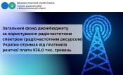 Загальний фонд держбюджету за користування радіочастотним спектром (радіочастотним ресурсом) України отримав від платників рентної плати 936,0 тис. гривень