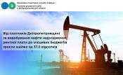 У січні – жовтні 2025 року від платників рентної плати за видобування нафти до місцевих бюджетів Дніпропетровської області надійшло понад 2,7 млн гривень. Це на 741,4 тис. грн більше ніж у січні – жовтні 2024 року. Темп росту – 136,9 відсотків.