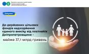 До державних цільових фондів надходження єдиного внеску від платників Дніпропетровщини – майже 37,1 млрд гривень