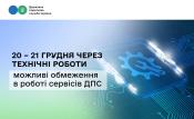 Увага! 20 – 21 грудня через технічні роботи можливі обмеження в роботі сервісів ДПС