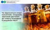 Враховуючи викладене вище, до спирту етилового, у розумінні ПКУ, не відносяться спирт коньячний, плодовий, зерновий дистилят.