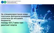 За спецвикористання води платники Дніпропетровщини сплатили до місцевих бюджетів понад 107,7 млн грн рентної плати