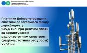 Платники Дніпропетровщини сплатили до загального фонду держбюджету 235,4 тис. грн рентної плати за користування радіочастотним спектром (радіочастотним ресурсом) України