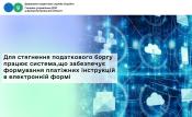 На виконання Національної стратегії доходів до 2030 року та наказу Міністерства фінансів України від 30.12.2024 № 669 «Про затвердження Порядку інформаційної взаємодії Державної податкової служби України, Державної казначейської служби України та надавачів платіжних послуг під час передавання платіжних інструкцій на стягнення коштів в електронній формі», з 20.08.2025 розпочала роботу система, яка забезпечує формування платіжних інструкцій в електронній формі в інформаційно-комунікаційній системі ДПС та направлення їх на виконання надавачам платіжних послуг для стягнення податкового боргу.