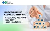 Надходження єдиного внеску у першому кварталі 2026 року зросли на 17,2 %