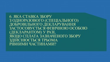 Яка ставка збору з одноразового (спеціального) добровільного декларування застосовується фізичною особою (декларантом) у разі, якщо сплата зазначеного збору здійснюється трьома рівними частинами?