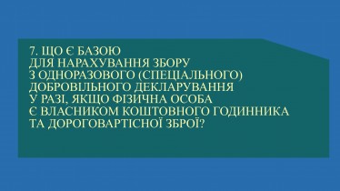 Що є базою для нарахування збору з одноразового (спеціального) добровільного декларування у разі, якщо фізична особа є власником коштовного годинника та дороговартісної зброї?
