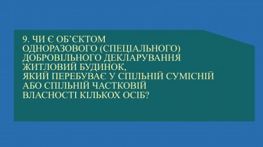 Чи є об’єктом одноразового (спеціального) добровільного декларування житловий будинок, який перебуває у спільній сумісній або спільній частковій власності кількох осіб?