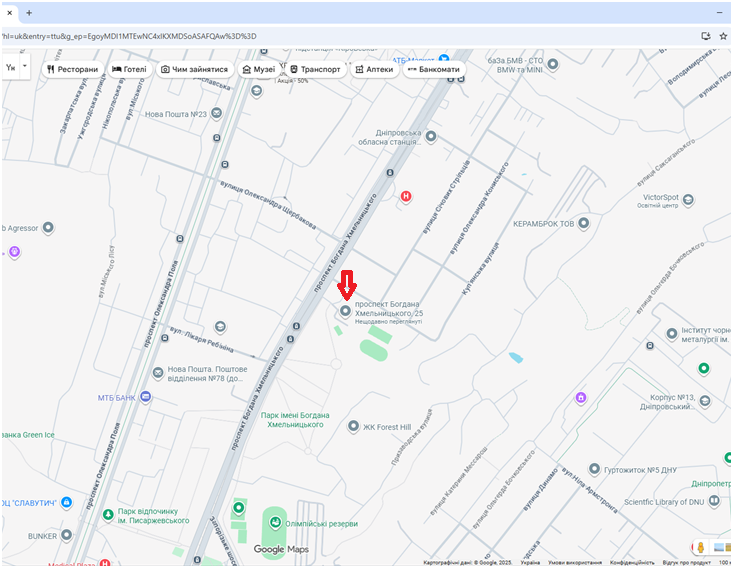 Поштова адреса: 49061, м.Дніпро, проспект Богдана Хмельницького, 25