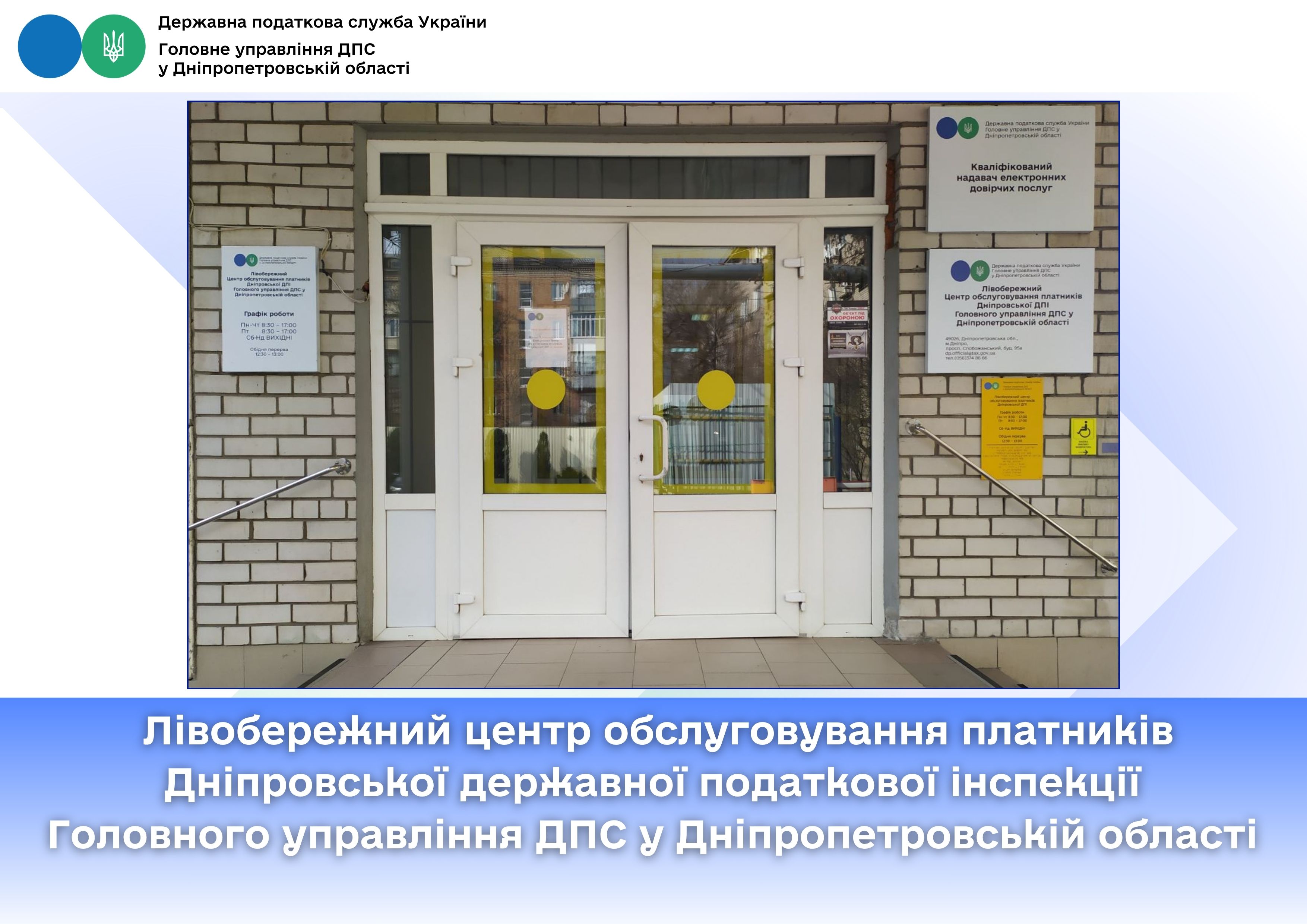 Адреса ЦОП: 49026, Дніпропетровська область, м. Дніпро, просп. Слобожанський, 95-А